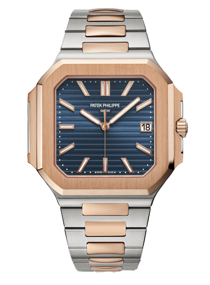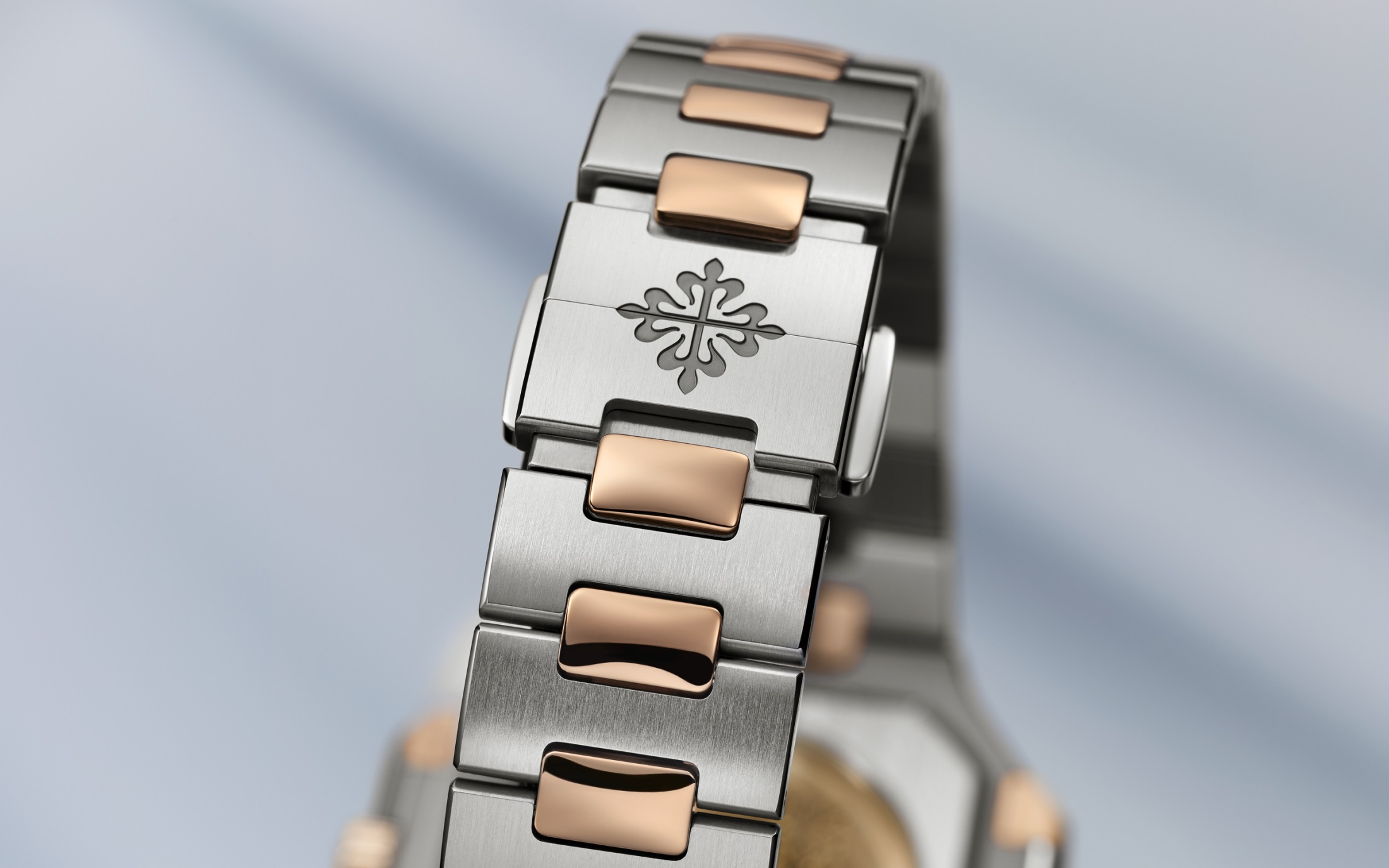 Patek Philippe präsentiert die neue Cubitus Kollektion mit kühnem, elegantem Design in einer Bicolor-Version aus Roségold und Stahl, die polierte und vertikal satinierte Finissierungen vereint.