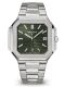 Das neue, eckige Gehäuse mit abgerundeten Kanten wirkt schlank und elegant am Handgelenk. Das Zifferblatt in raffiniertem Olivgrün mit Sonnenschliff und horizontaler Reliefprägung wird durch ein Stahlarmband mit Verlängerungssystem und patentierter Faltschließe ergänzt, die für Komfort und Sicherheit sorgen. Im Inneren arbeitet das Automatikwerk Kaliber 26-330 S C mit Sekundenstopp und einem zentralen Rotor aus 21 Karat Gold, der das horizontale Dekor des Zifferblatts widerspiegelt.