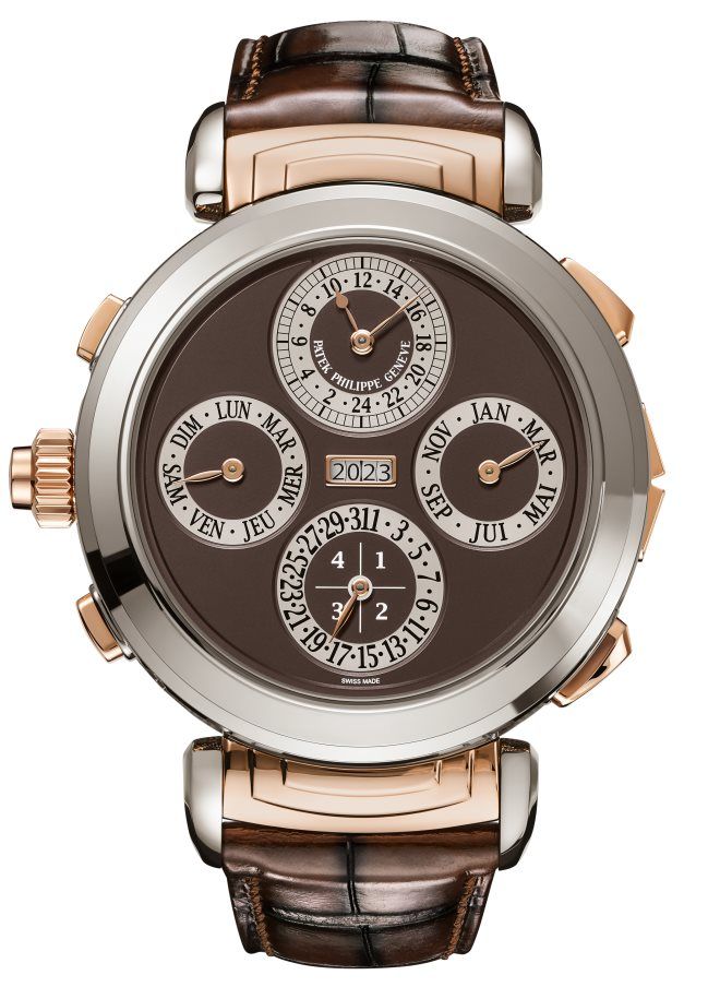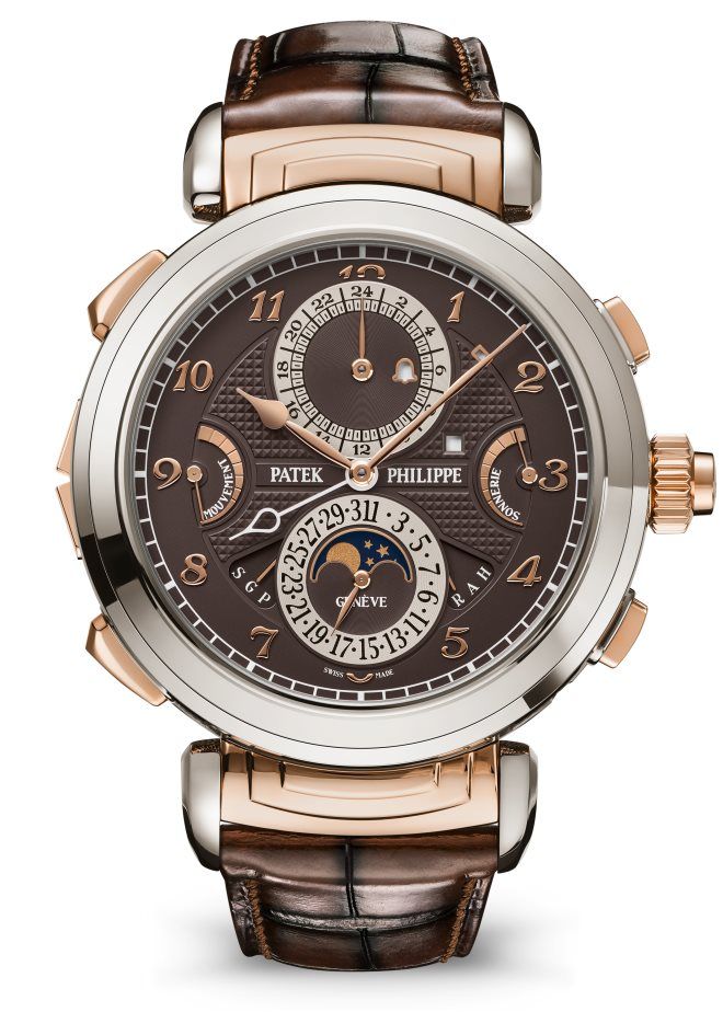 Patek Philippe legt das Design seiner kompliziertesten Armbanduhr neu auf und präsentiert sie zum ersten Mal als zweifarbige Version in Weiß- und Roségold mit opalbraunem Zifferblatt.