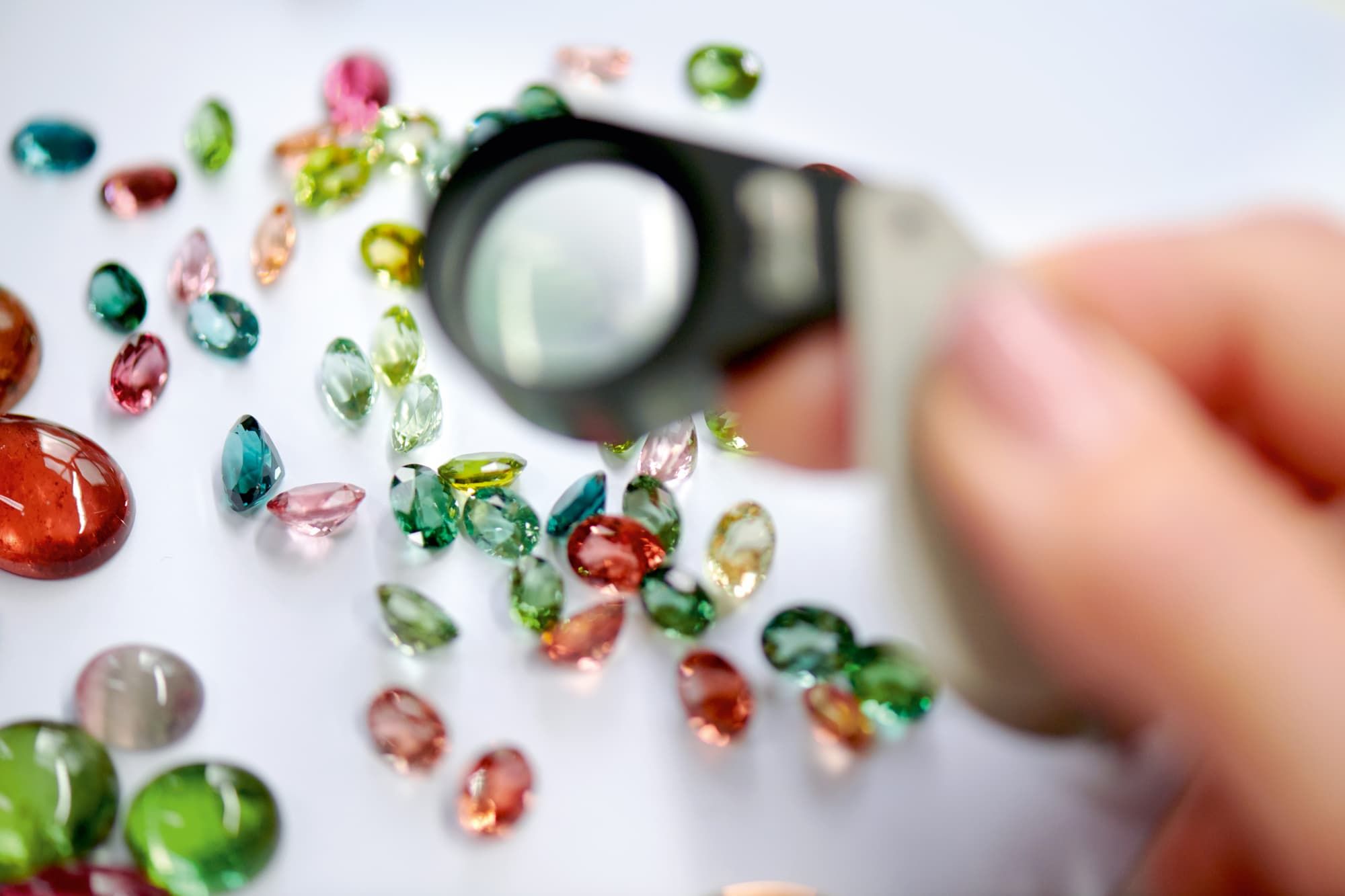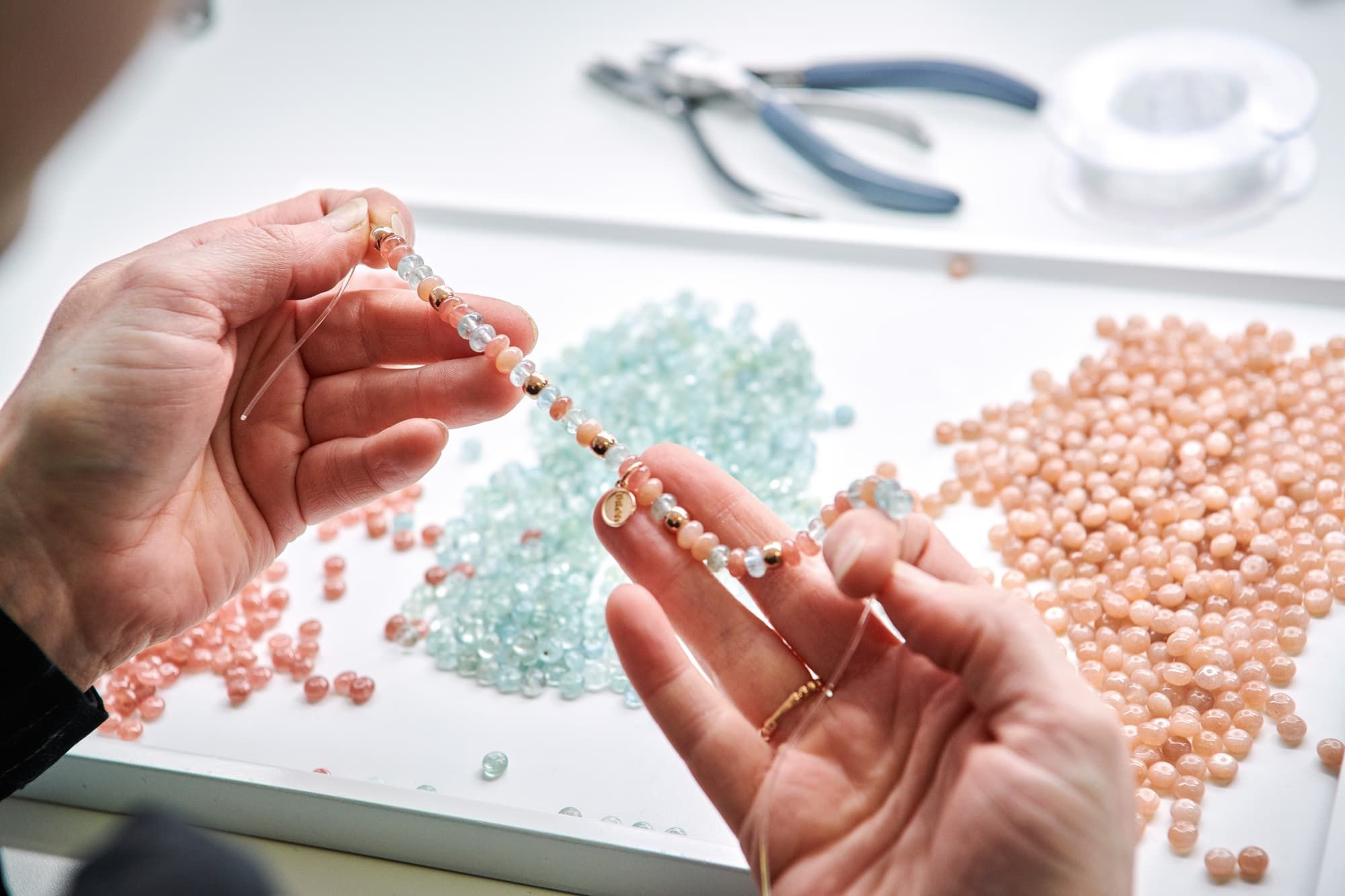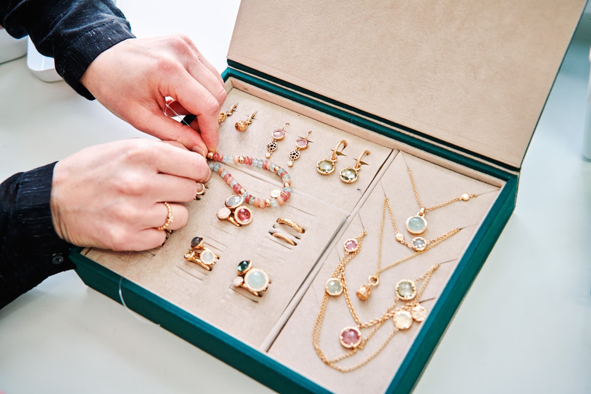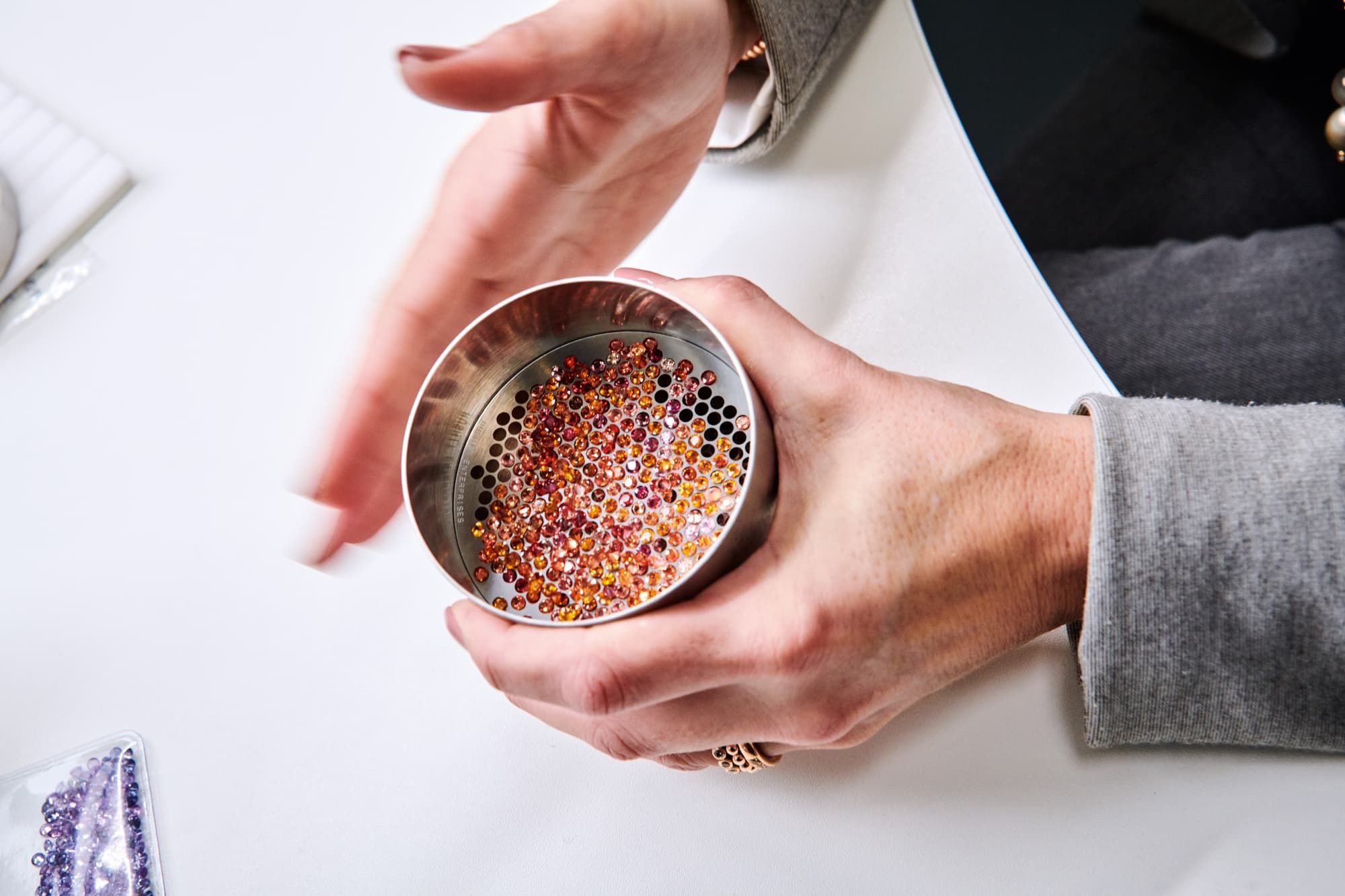 Alle Edelsteine, die bei Bron verarbeitet werden, sind von Ellen und ihrem Kollegen Paul van Muijden handverlesen: Auf den wichtigsten Edelsteinbörsen der Welt nehmen sie jeden Stein in die Hand und schauen sich alle genauestens und einzeln an.