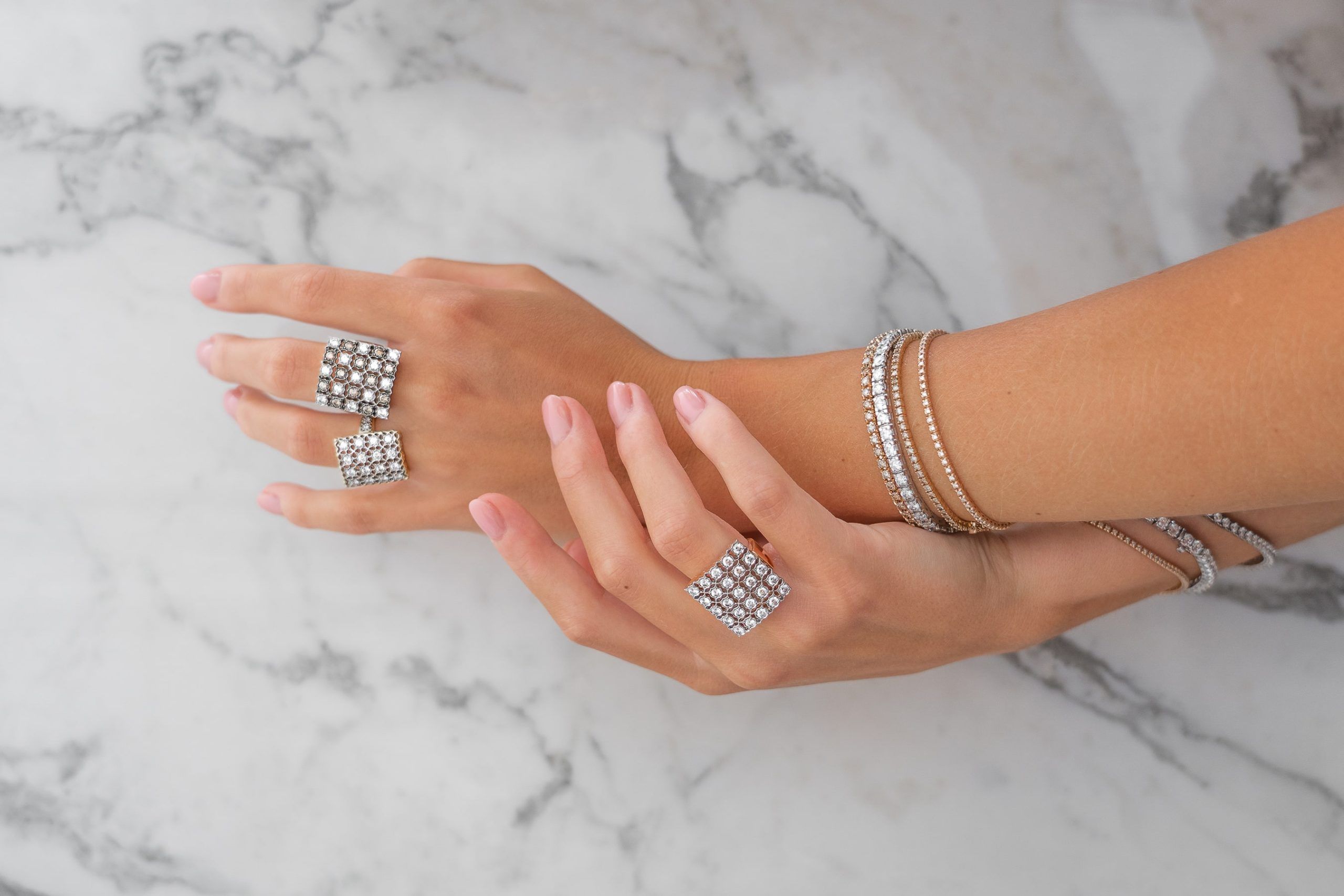 Die Chandelier Ringe aus dem Hause Grimaldo Firenze sind eine Neuinterpretation klassischer Edelsteine: Äußerst elegant und extravagant zugleich vereinen sie Größe, Form und Farbe in einem üppigen Feuerwerk aus Farbe und Licht. Den Anspruch an höchste Schmuckexzellenz unterstreichen dabei sowohl die klare Anordnung als auch die handwerklich meisterhafte Umsetzung.