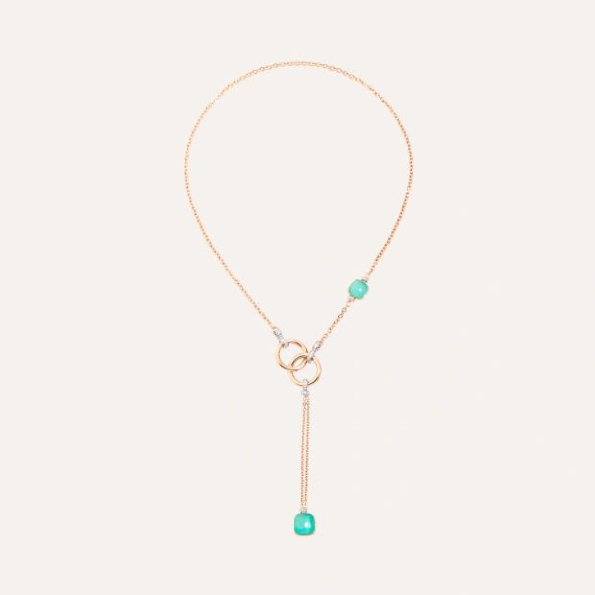 Lariat-kette aus roségold und weißgold 18 kt. mit 83 diamanten (≈ 0,8 kt.), 2 topasen in sky blue und chrysopras (≈ 15,5 kt.).