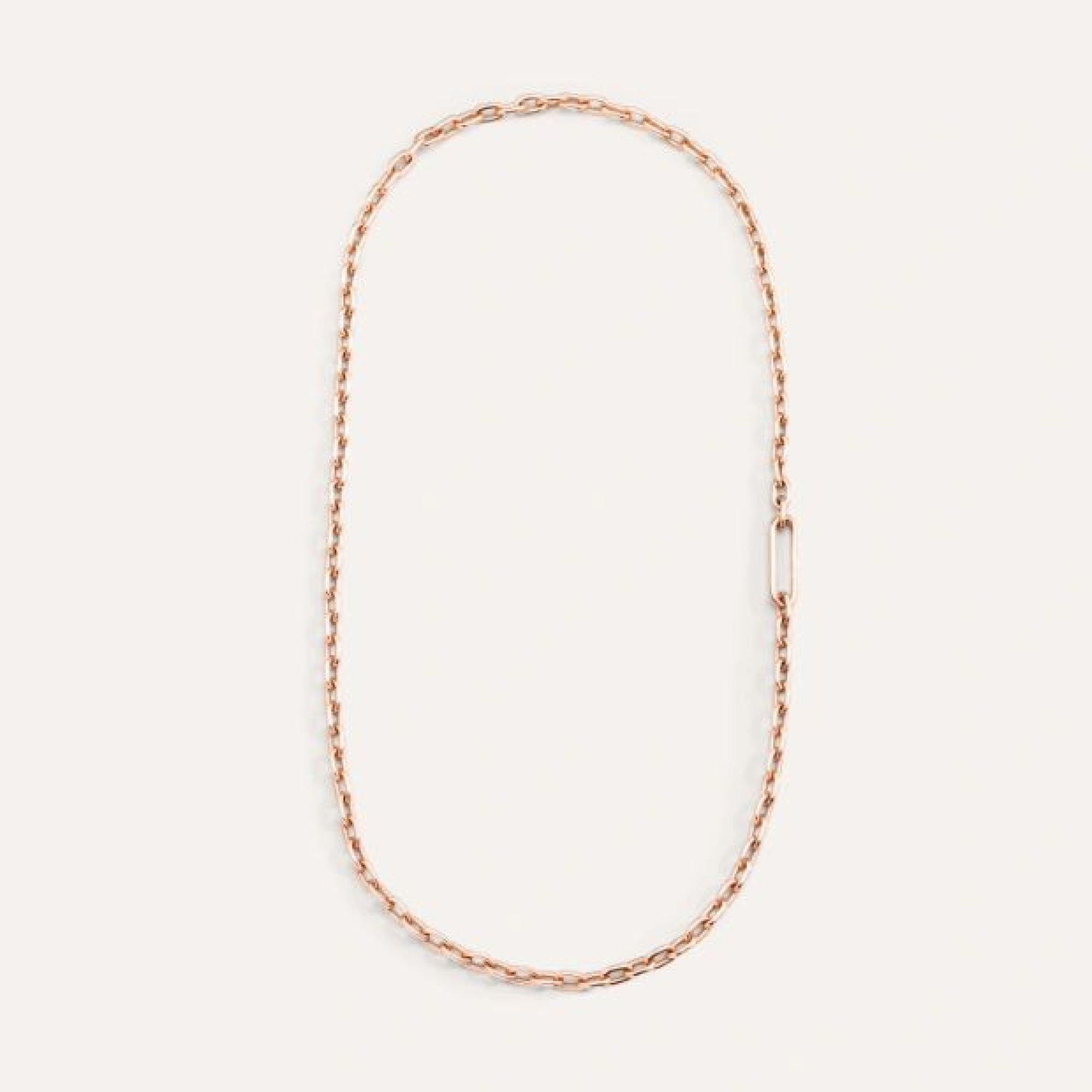 Die Halskette aus Roségold hat den charakteristischen, übergroßen Gliederverschluss der Iconica Kollektion. Das schlichte Design ist unisex und kann genderfluid getragen werden. Es überzeugt auf Anhieb durch seine universelle Wirkung: essentiell und raffiniert, inspiriert vom Mailänder Design.
