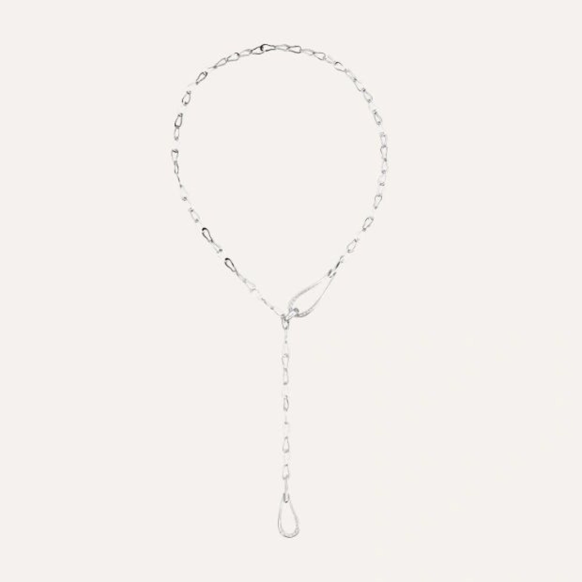 Pomellato stellt die Fantina-Halskette aus Weißgold und Diamanten vor, die sowohl als Sautoir als auch als Lariat getragen werden kann. Durch das minimalistische und raffinierte Design passt sie zu jedem Alltagslook