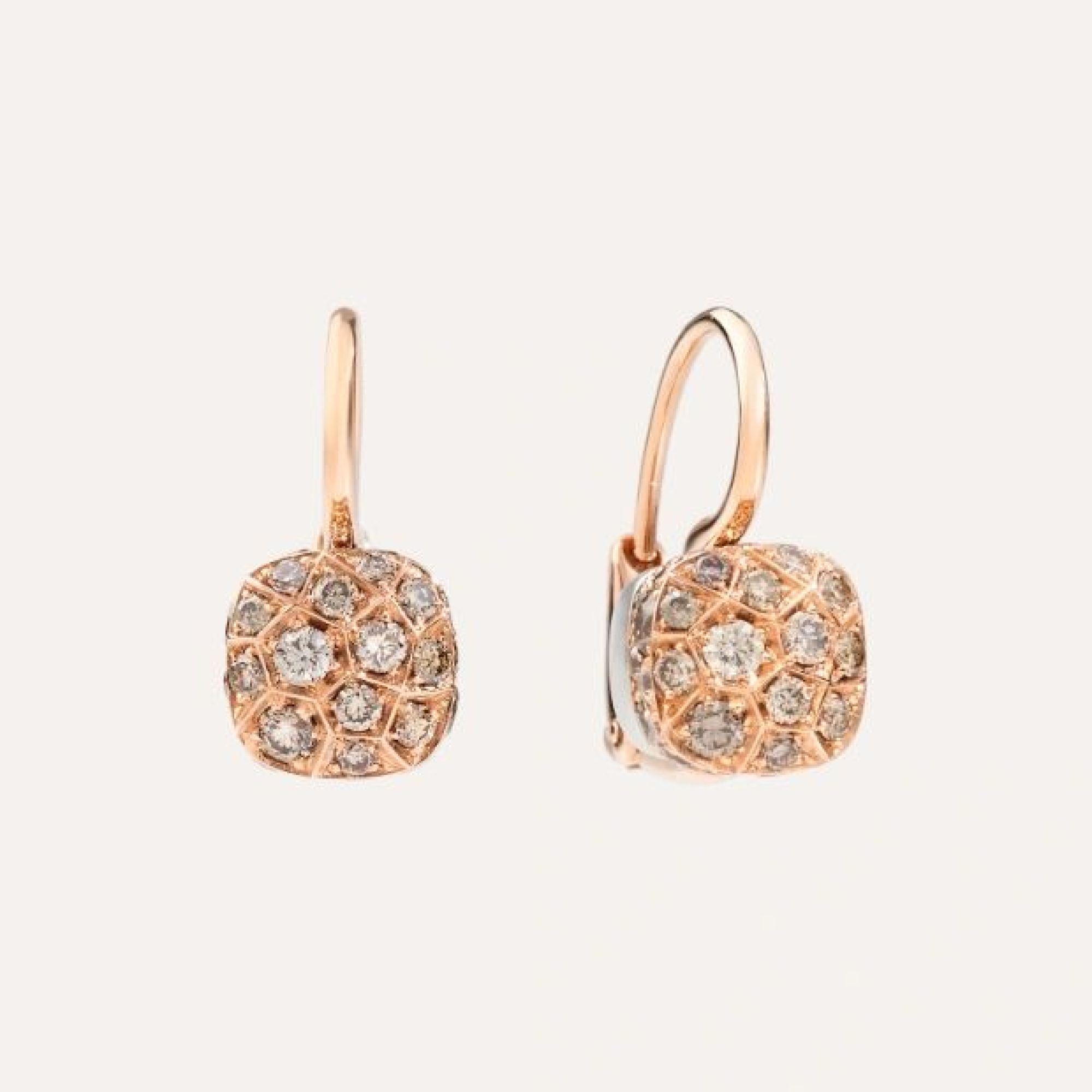 Ohrringe aus 18 Kt Rosé- und Weißgold mit 78 braunen Diamanten (≈1.8 ct).