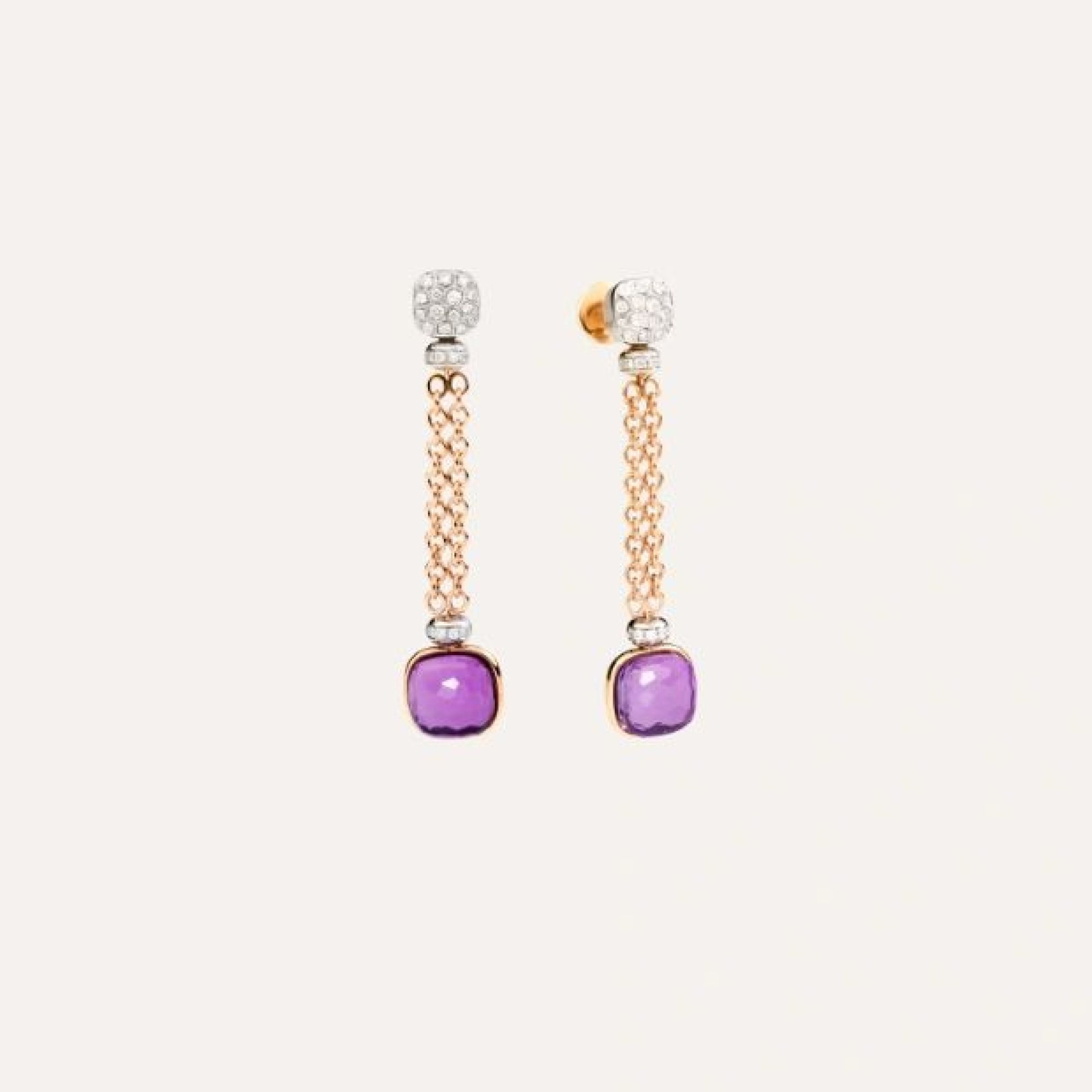 Die Schmuckstücke der Kollektion Nudo 2021 feiern die Einzigartigkeit der Frau. Als Pomellatos klassischstes Design sind die Schmuckstücke der Kollektion Nudo sofort erkennbar, mit „nackten“ Edelsteinen ohne Fassung in allen Farben des Regenbogens. Kombiniert zu den Ringen oder als komplettes Set getragen, hängen die schwungvollen Nudo-Amethyste von roségoldenen Ohrringen mit schimmerndem Diamantpavé.