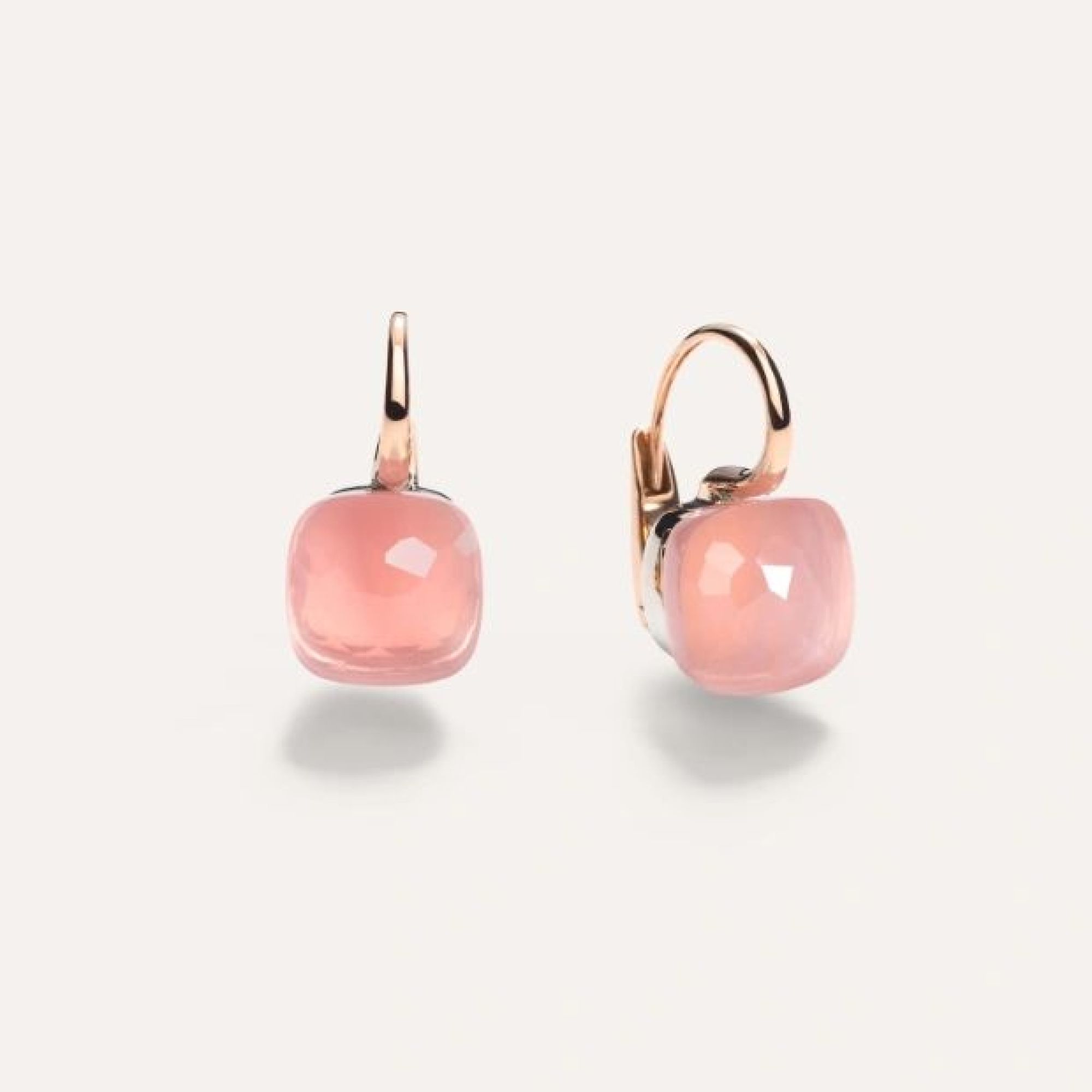 Ohrringe aus 18 Kt Rosé- und Weißgold mit 2 Rosenquarzen (≈14 ct).