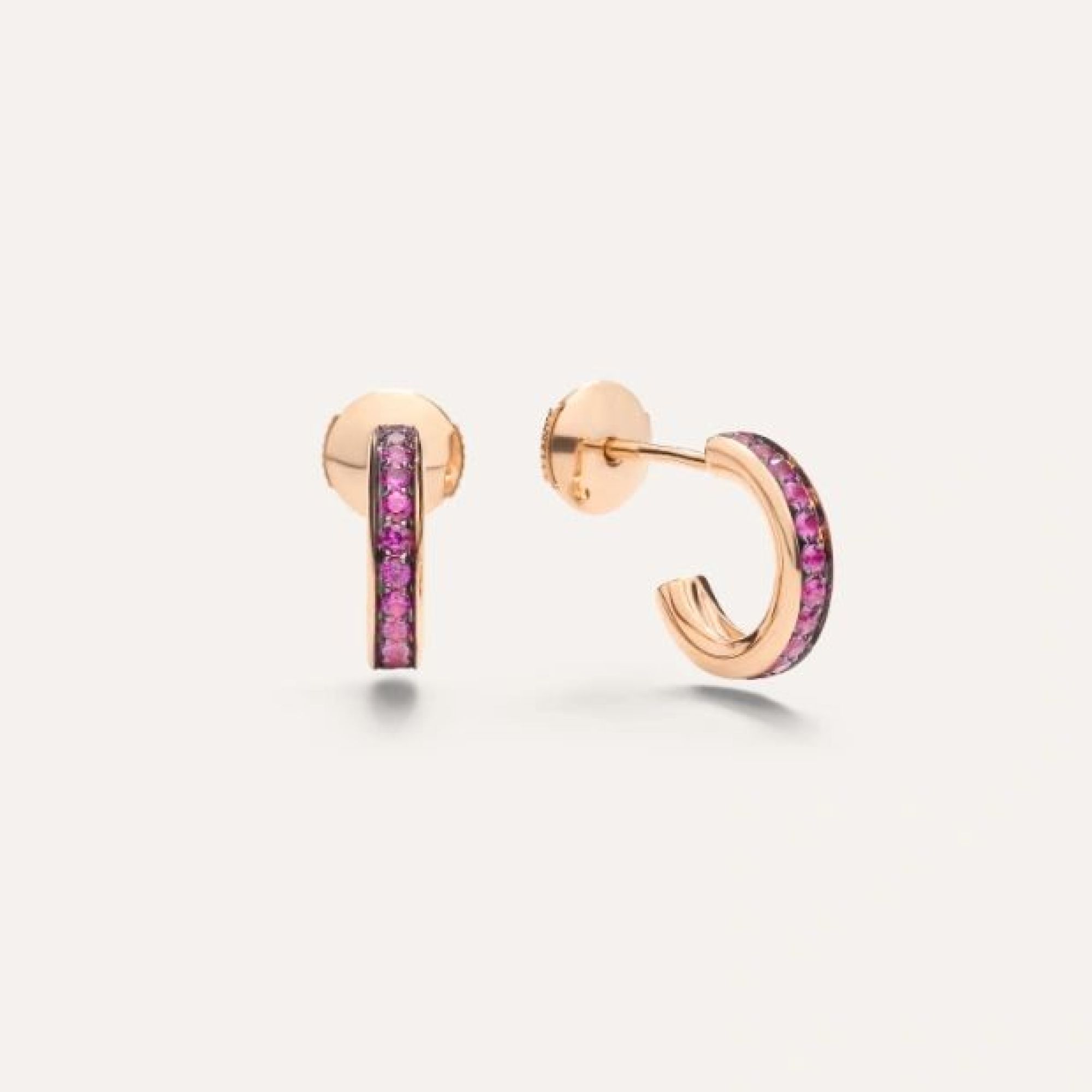 Der Stil von Pomellato Together ist traditionsbewusst und doch markant und zeitgemäß. Die raffinierten Volumina sind das Markenzeichen von Pomellato. Die kleinen Ohrringe mit Schleife zeigen die schlichte Mailänder Eleganz von ihrer besten Seite. Aus Rosé gold und Rubinen, die das Feuer der Leidenschaft entfachen.