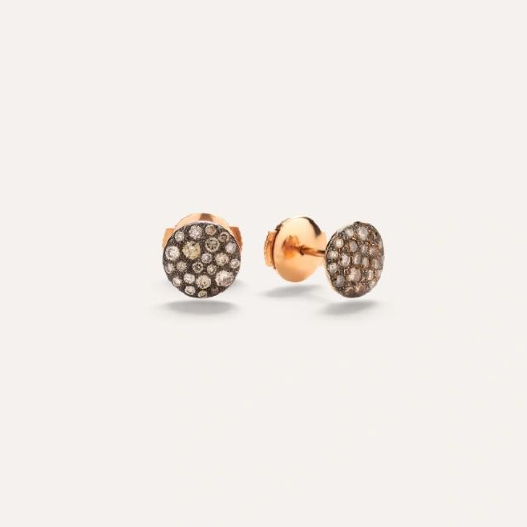 Ohrringe aus 18 Kt Roségold mit 44 braunen Diamanten (≈0.5 ct) auf schwarz rhodiniertem 18 Kt Roségold.