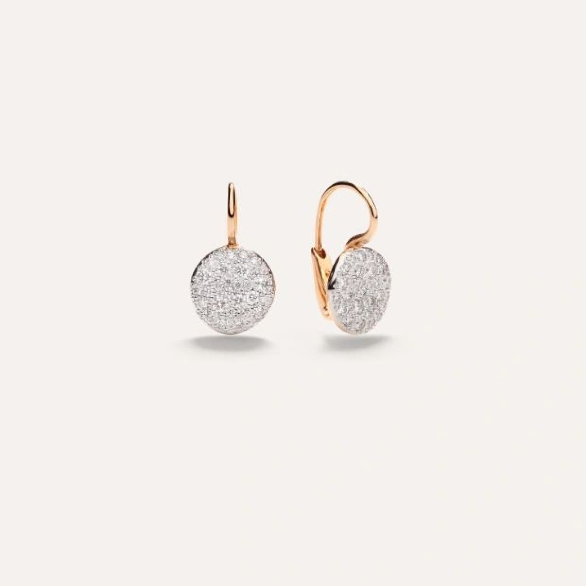 Ohrringe aus 18 Kt Roségold mit 60 weißen Diamanten (≈0.8 ct) auf weiß rhodiniertem 18 Kt Roségold.