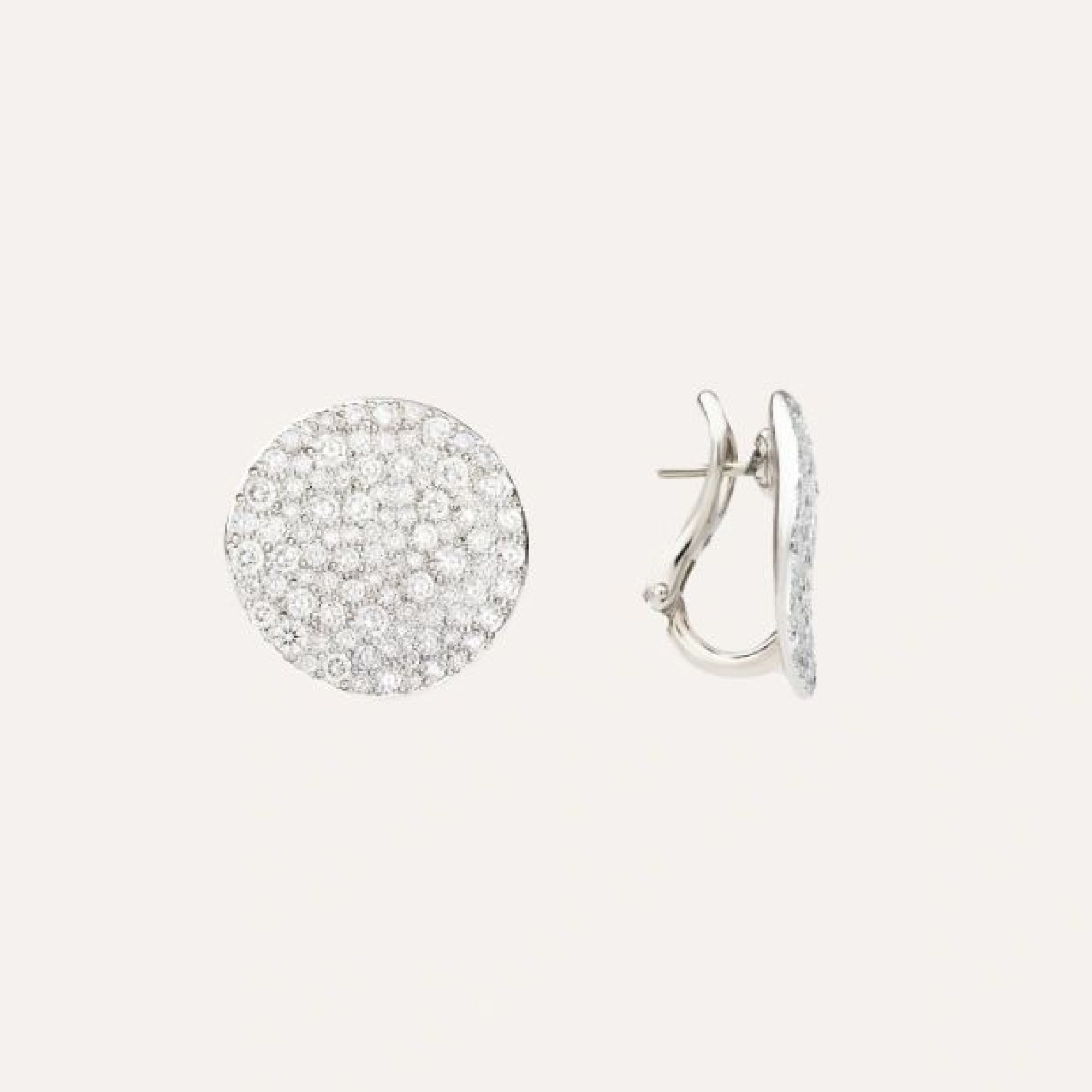 Die Clip-Ohrringe der Kollektion Sabbia gibt es jetzt auch in Weißgold, das dieser beliebten Kollektion einen raffinierten, kühlen Goldton verleiht. Die Ohrringe sind mit einem taktilen Diamantenpavé in einem natürlichen Muster besetzt, das Sabbia seinen organischen und lässigen Chic verleiht.