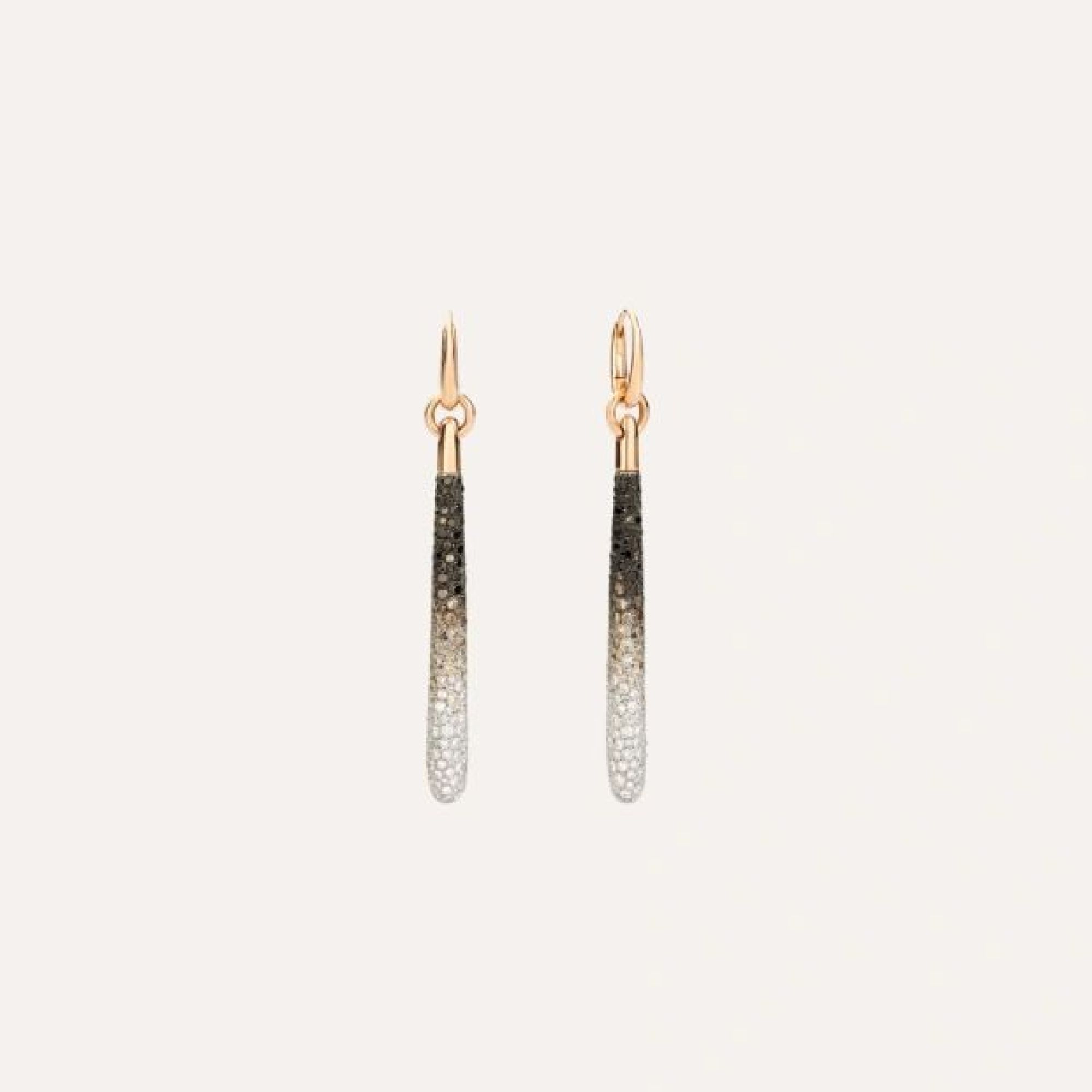 Ohrringe aus 18 Kt Rosé- und Weißgold mit 226 weißen Diamanten (≈5.1 ct) auf rhodiniertem 18 Kt Weißgold, 198 braunen Diamanten (≈4.6 ct) auf schwarz rhodiniertem 18 Kt Weißgold und 182 schwarzen Diamanten (≈4.3 ct) auf schwarz rhodiniertem 18 Kt Weißgold.