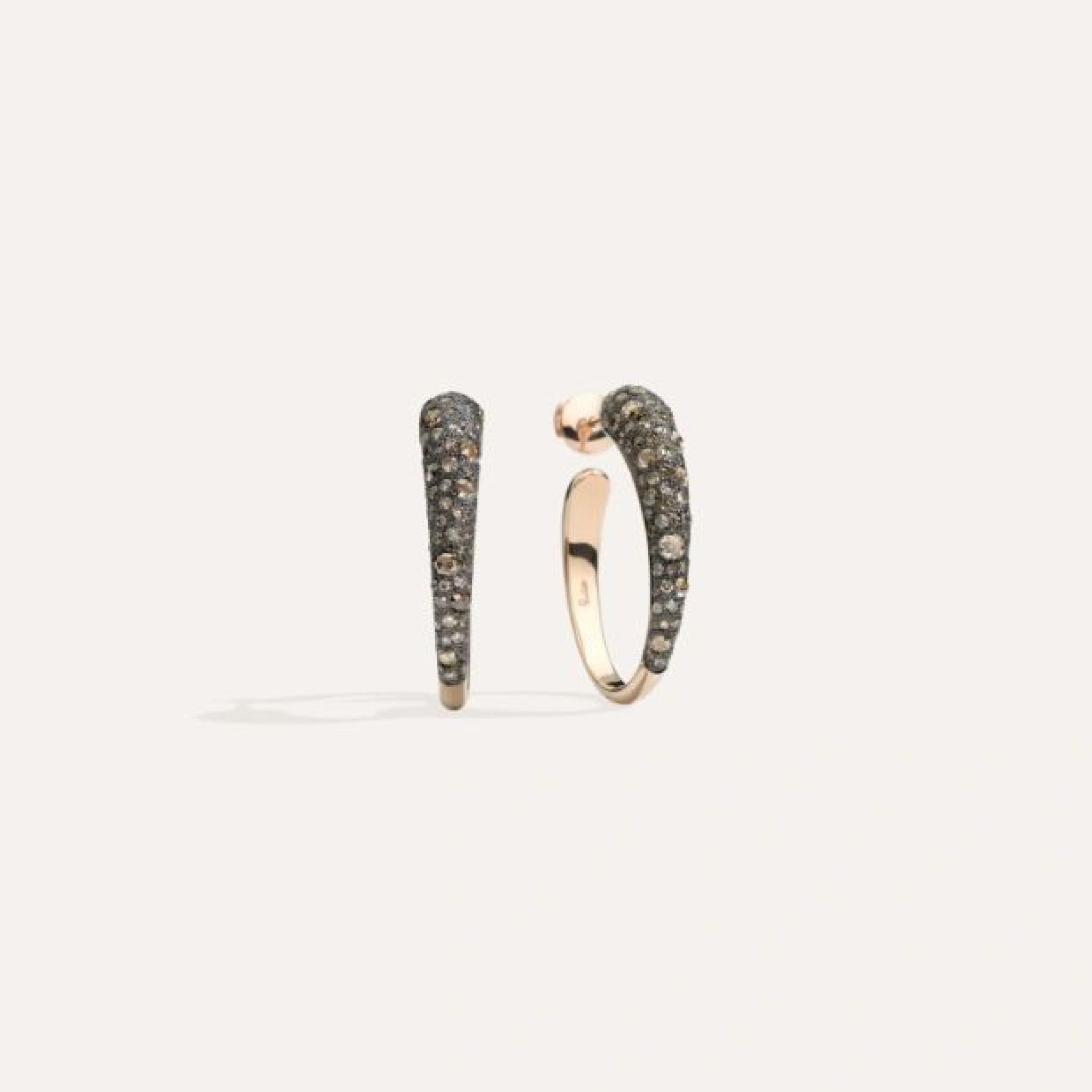 Ohrringe aus 18 Kt Roségold mit 158 braunen Diamanten (≈3.7 ct) auf schwarz rhodiniertem 18 Kt Roségold.