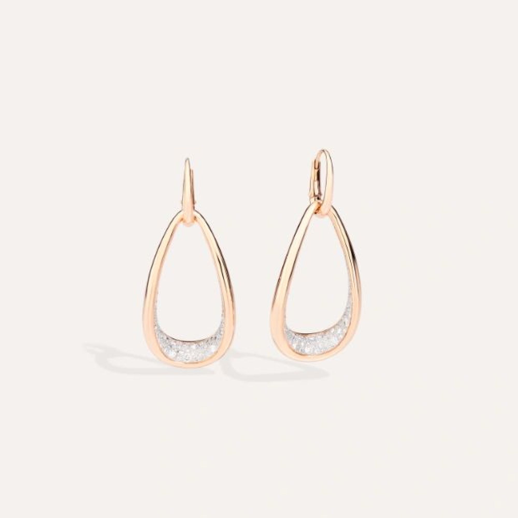Ohrringe aus 18 Kt Roségold mit 134 weißen Diamanten (≈1.9 ct) auf weiß rhodiniertem 18 Kt Roségold.