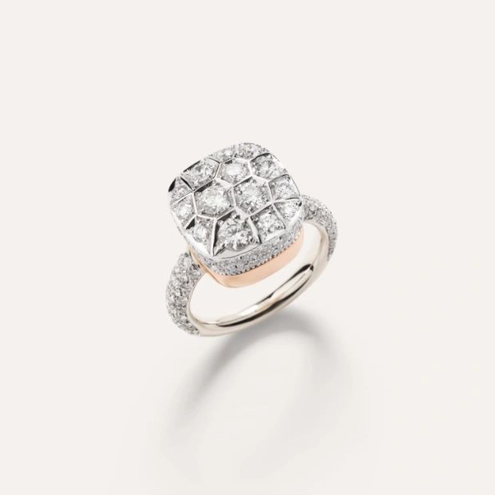 Ring aus 18 Kt Weiß- und Roségold mit 137 weißen Diamanten (≈3.6 ct) auf weiß rhodiniertem 18 Kt Weißgold.