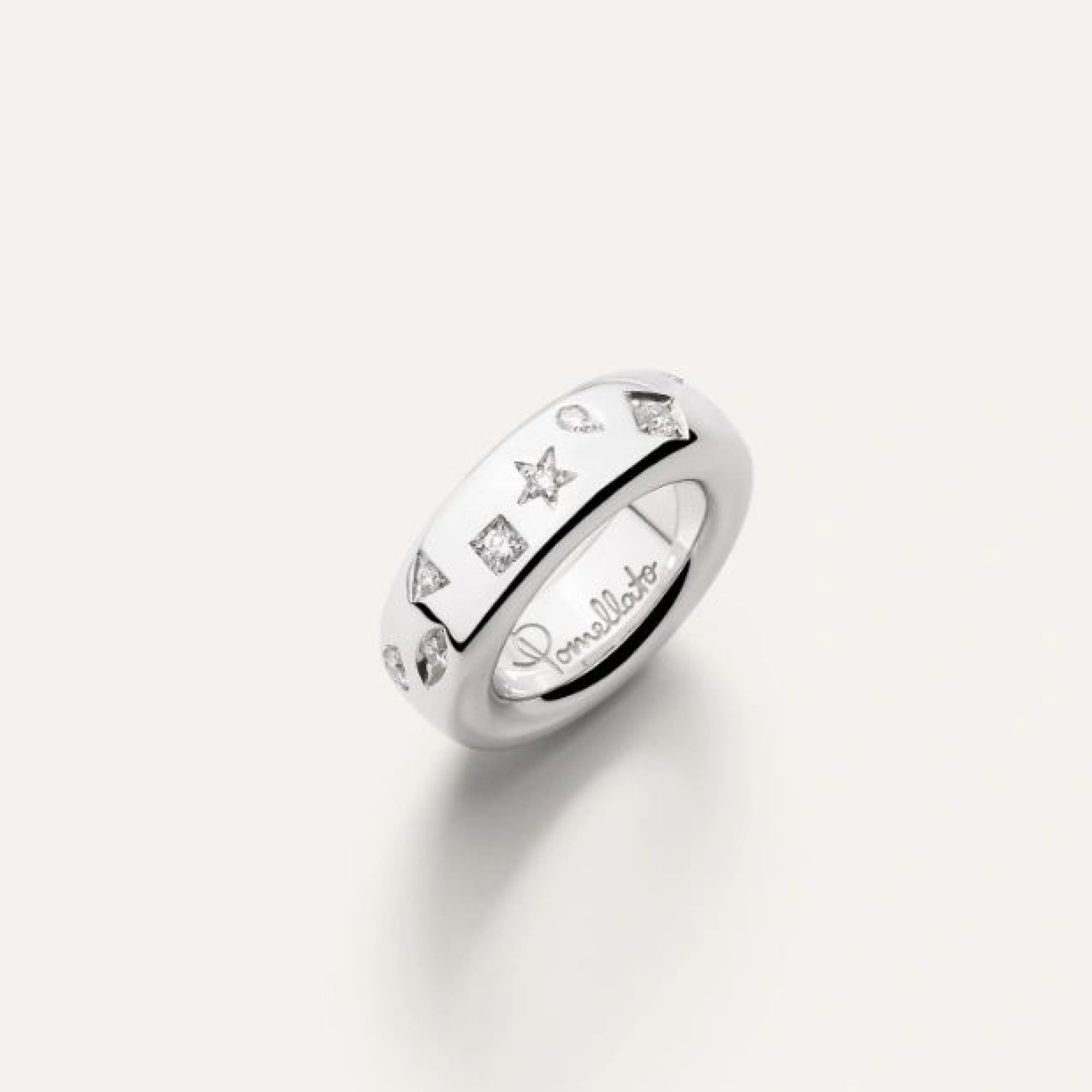 Iconica, Pomellatos Kollektion schön geschwungener Goldschmuckstücke, wurde als Hommage an die reiche Goldschmiedetradition der Maison gefertigt. Jede handwerkliche Iconica-Kreation ist ein Meisterwerk der Schmuckkunst für überzeugte Schmuckliebhaberinnen. Die Schmuckkollektion aus Weißgold umfasst mehrere neue Schmuckstücke, darunter Weißgold-Versionen der beliebtesten Roségold-Ringe, besetzt mit unverwechselbaren Iconica-Diamantformen.