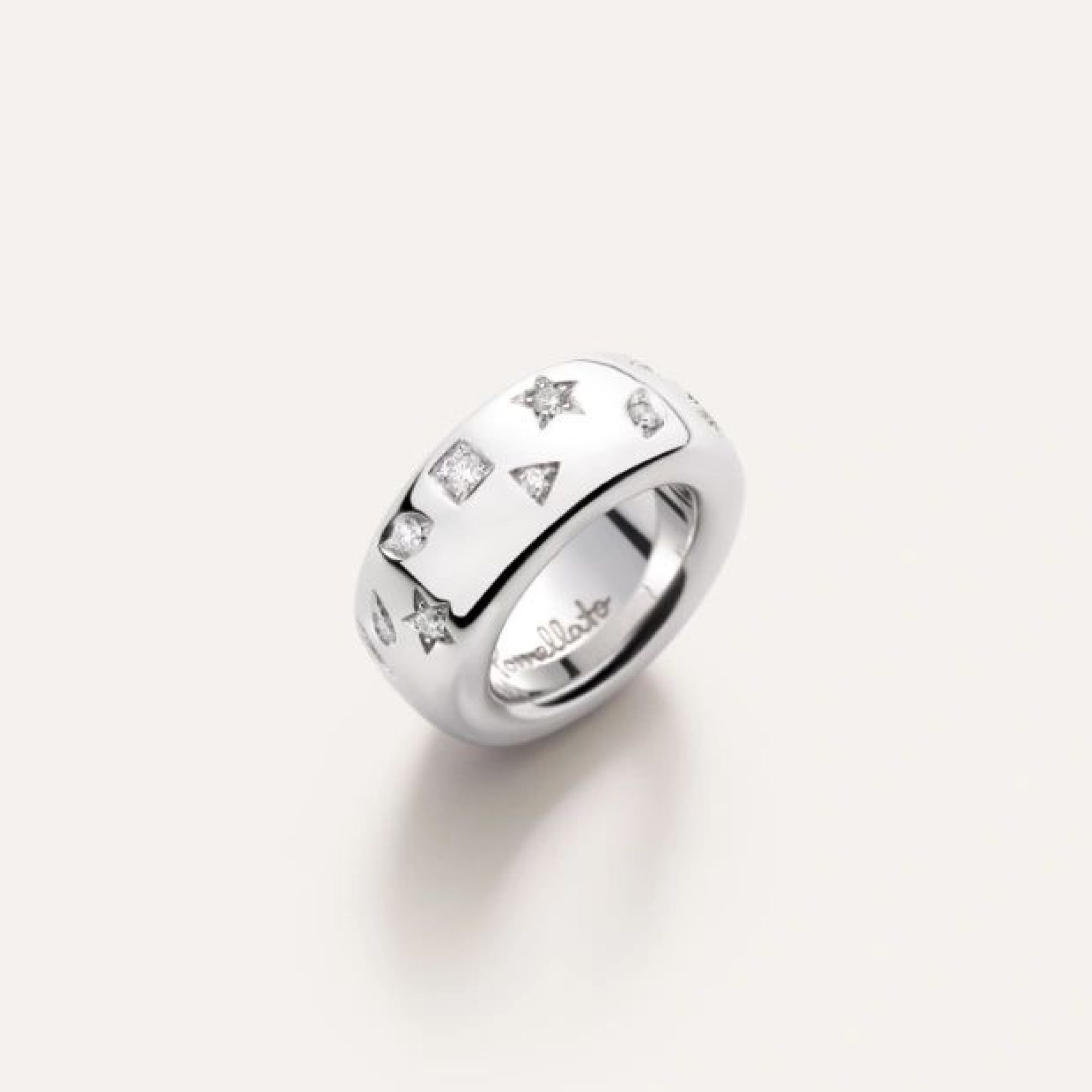 Iconica, Pomellatos Kollektion schön geschwungener Goldschmuckstücke, wurde als Hommage an die reiche Goldschmiedetradition der Maison gefertigt. Jede handwerkliche Iconica-Kreation ist ein Meisterwerk der Schmuckkunst für überzeugte Schmuckliebhaberinnen. Die Schmuckkollektion aus Weißgold umfasst mehrere neue Schmuckstücke, darunter Weißgold-Versionen der beliebtesten Roségold-Ringe, besetzt mit unverwechselbaren Iconica-Diamantformen.