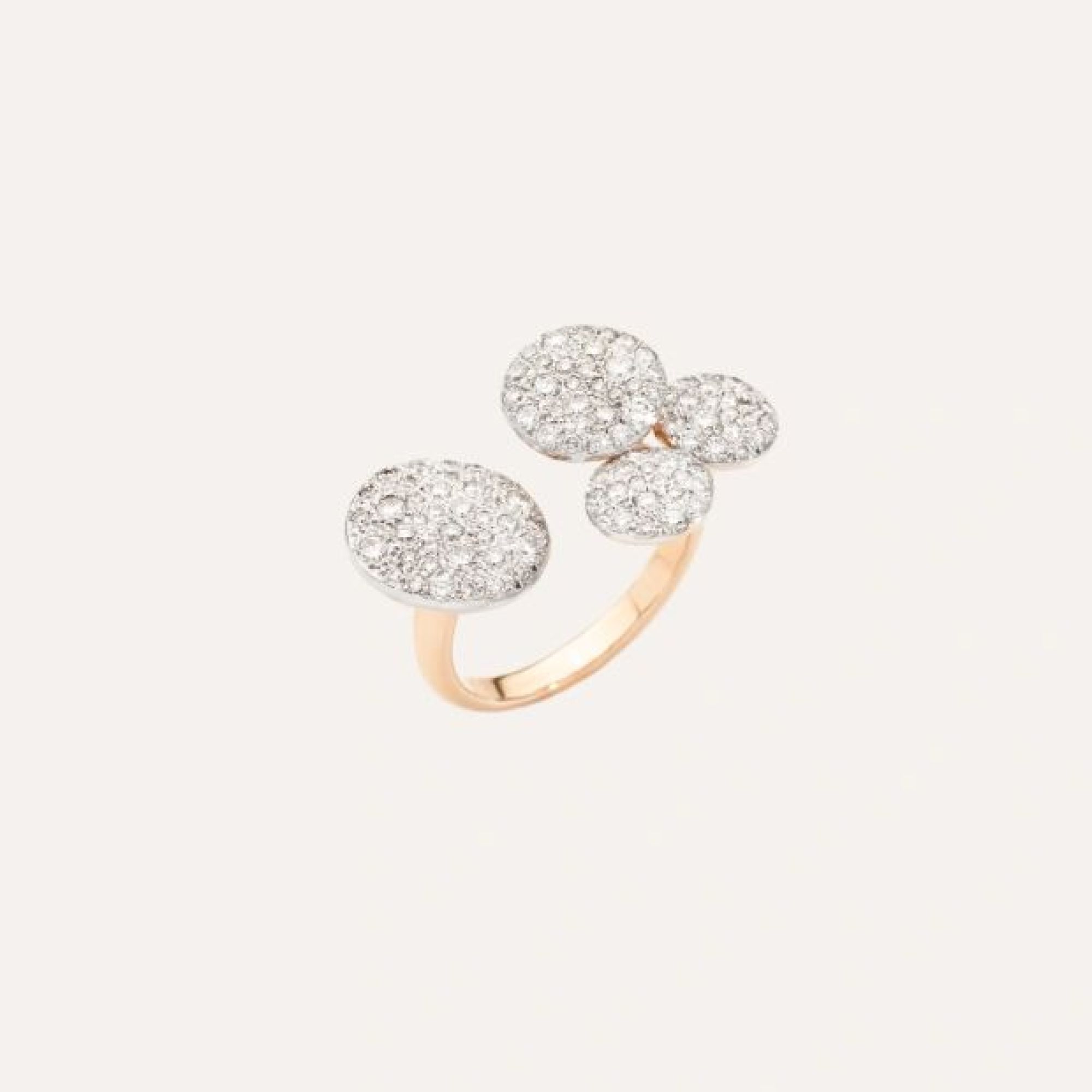 Ring aus 18 Kt Roségold mit 111 weißen Diamanten (≈1.6 ct) auf weiß rhodiniertem 18 Kt Roségold.