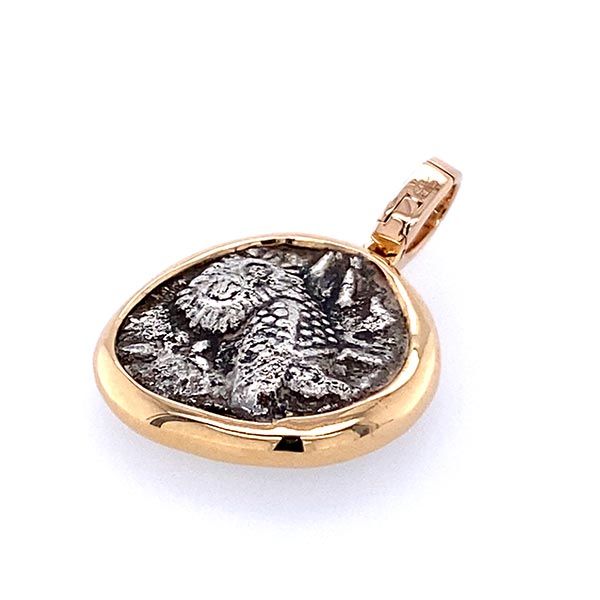 Münzanhänger Eule aus 18 KT. Roségold