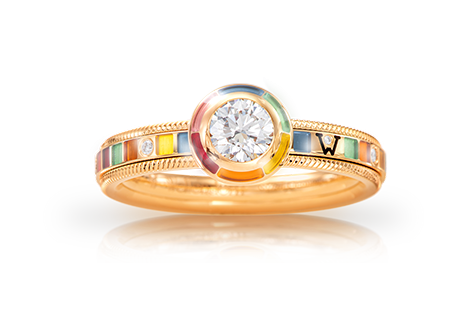 Die Handhabung des Verschlusses ist sogar noch leichter als die der anderen der Schmuckmanufaktur. Und dabei ist er so hübsch, dass er am besten sichtbar vorn und nicht versteckt im Nacken getragen wird. Apropos hübsch: Ein wirklich schönes Geschenk hat uns Wellendorff mit der Gestaltung einer ganz besonderen Ringlimitierung zu unserem 175. Jubiläum gemacht. Die Ringe sind sowohl dank ihrer außergewöhnlichen Farbkombination als auch wegen der speziellen Schutzengelgravur echte Unikate: Kein anderes Wellendorff Schmuckstück trägt diese Farben oder den gleichen Engel. Zudem symbolisiert es perfekt die Geschichte unserer engen Verbundenheit.