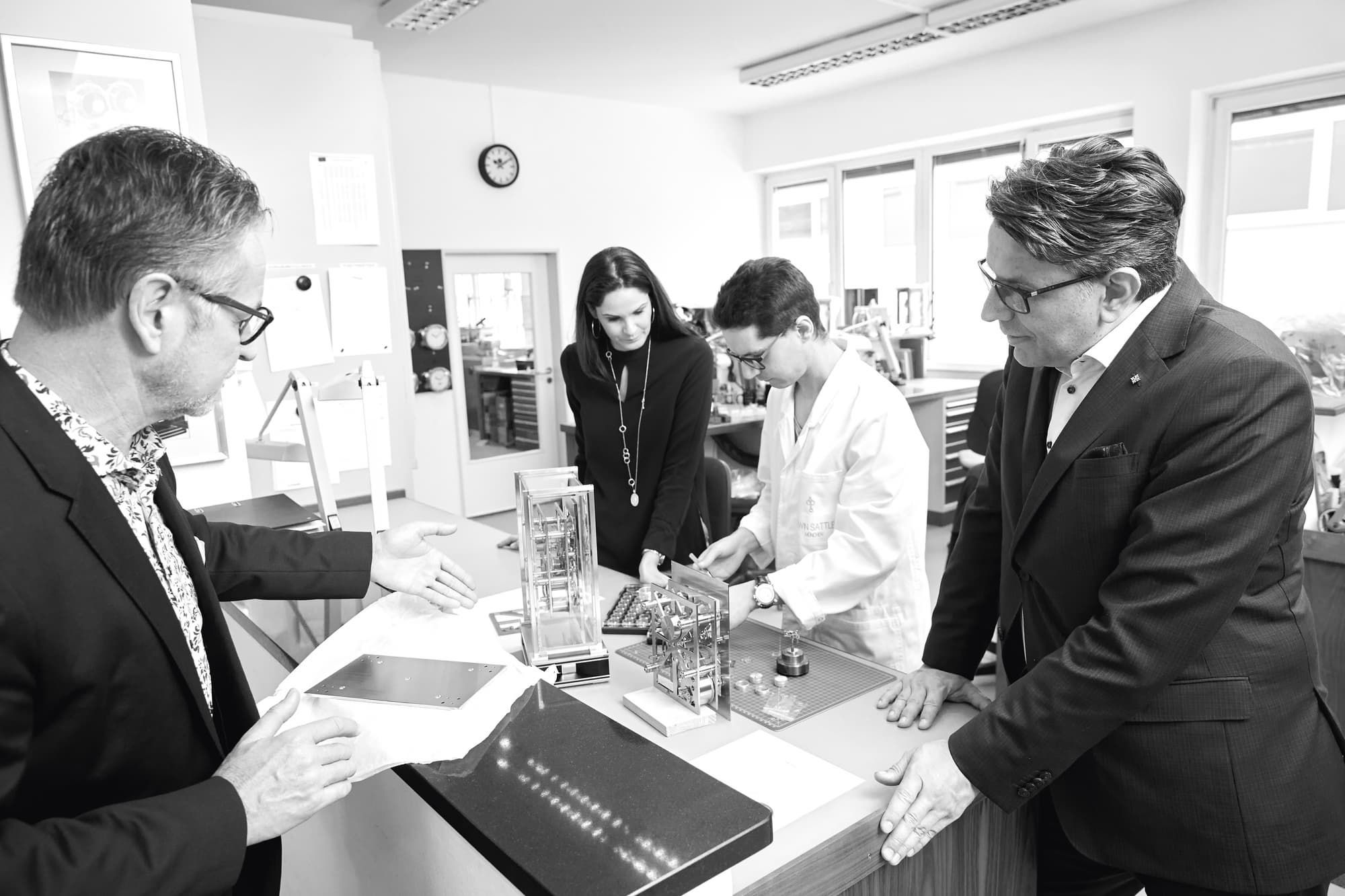 Fast alle Mitarbeiter gehören zur Familie Sattler – und sie alle verbindet eine große Leidenschaft für das Uhrmacherhandwerk.